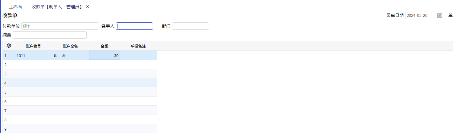 按单结算,则选择相关单位后,系统会寻找出所有未结算的单据并显示出来,所收取的金额需要分配到每一笔业务中;具体操作如下图: